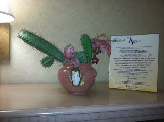 We declined eating our expensive breakfast while sitting on a log and took off into the desert bound for Taos, New Mexico. Stay tuned for tales of living in a historic Native American adobe casita for several days without air conditioning. Don’t you know the my personal Dalai just loved that?