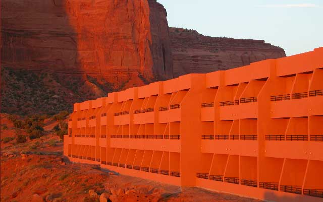 The scenery between Flagstaff and Monument Valley, Utah, is magnificent. Every turn and change in elevation brought us new delights. We were excited to see our gorgeous hotel, on which we had splurged (hence the cheapo stop in Flagstaff) so we could appreciate the grandeur of the natural monuments formed 570 million years ago when their lake bed disappeared. The View Hotel is the only place offering rooms with views of Monument Valley. The hotel’s marketing department is almost as remarkable as the attraction it exploits.