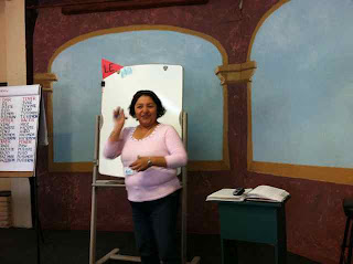 I look relaxed and happy, but don’t be fooled. I’m actually crazed and tense. My partner in the class was very kind but I know that secretly she wanted to slap me. My Spanglish is improving, but it’s touch and go. One day I can croak out a simple sentence before the recipient nods off. Other days I can’t get two verbs to come out in the present tense. I hope I live long enough to understand at least one bit of gossip that now escapes me.