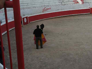Tim was recently invited to participate in one of the MOST Mexican cultural events, the bullfight. Now I know he looks small (the bull), but he got up quite a bit of speed when Tim riled him up with that cape!