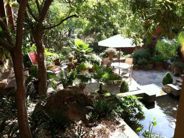 | The patio and fountain downstairs. |